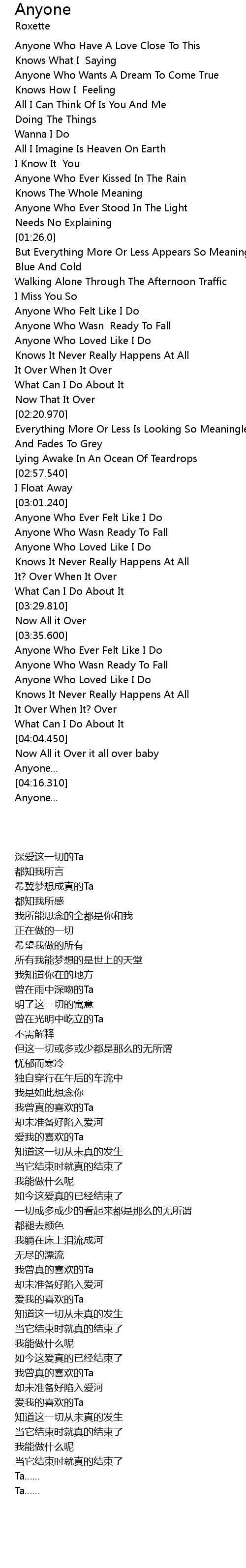 | [03:02.620] | Anyone Who Ever Felt Like I Do |