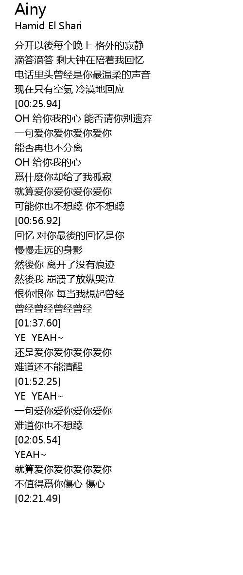 | [00:34.72] | yi ju ai ni ai ni ai ni ai ni |