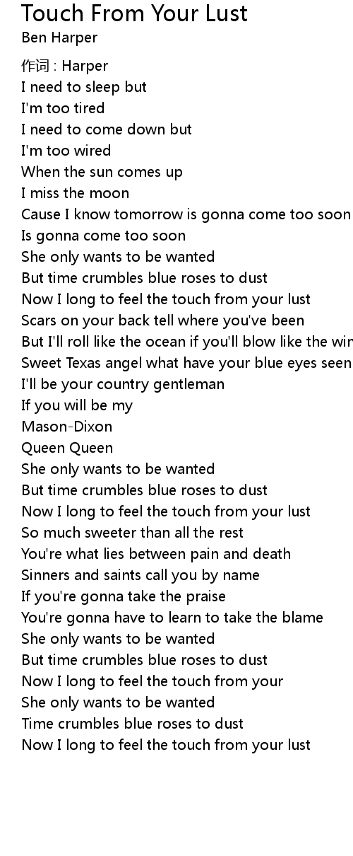 | Now I long to feel the touch from your lust |
