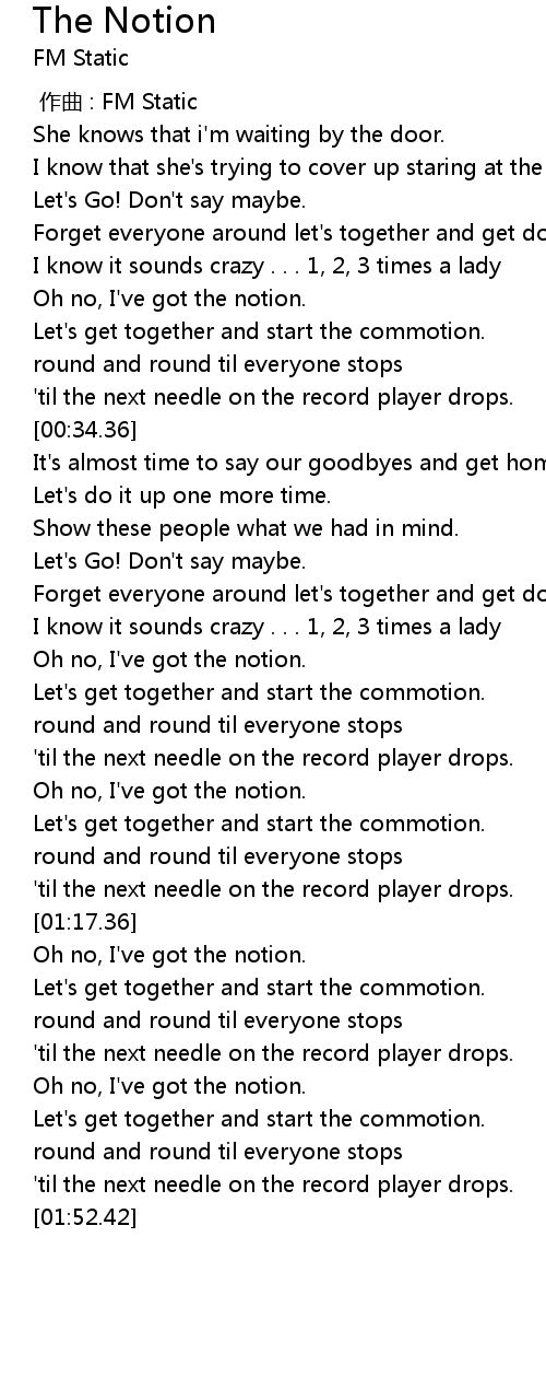 | [01:43.69] | Oh no, I' ve got the notion. |