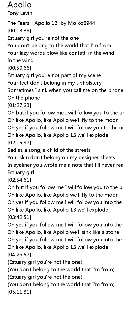 Oh like Apollo, like Apollo we'll sink like a stone |