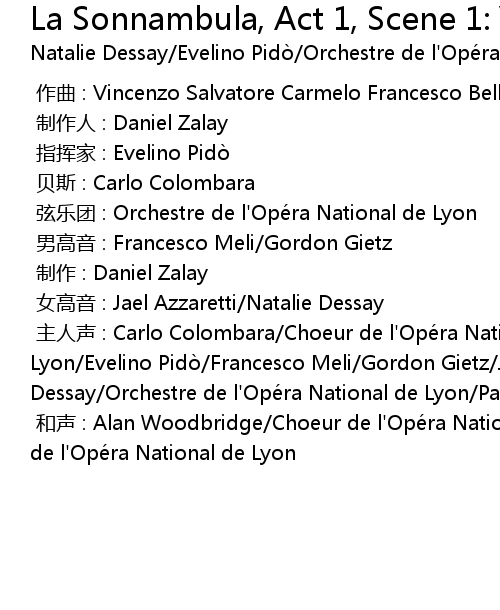 | [00:00.000] | zhu ren sheng : Carlo Colombara Choeur de l' Ope ra National de Lyon Evelino Pido Francesco Meli Gordon Gietz Jael Azzaretti Natalie Dessay Orchestre de l' Ope ra National de Lyon Paul Gay Sara Mingardo |