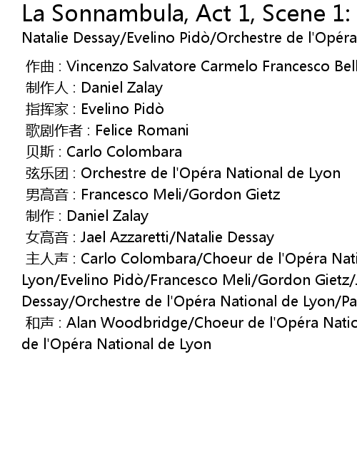 | [00:00.000] | zhu ren sheng : Carlo Colombara Choeur de l' Ope ra National de Lyon Evelino Pido Francesco Meli Gordon Gietz Jael Azzaretti Natalie Dessay Orchestre de l' Ope ra National de Lyon Paul Gay Sara Mingardo |
