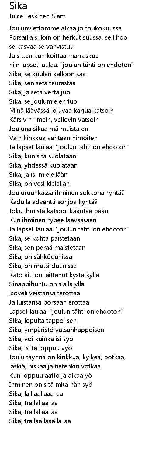 | Joulu t ynn on kinkkua, kylke, potkaa, | |