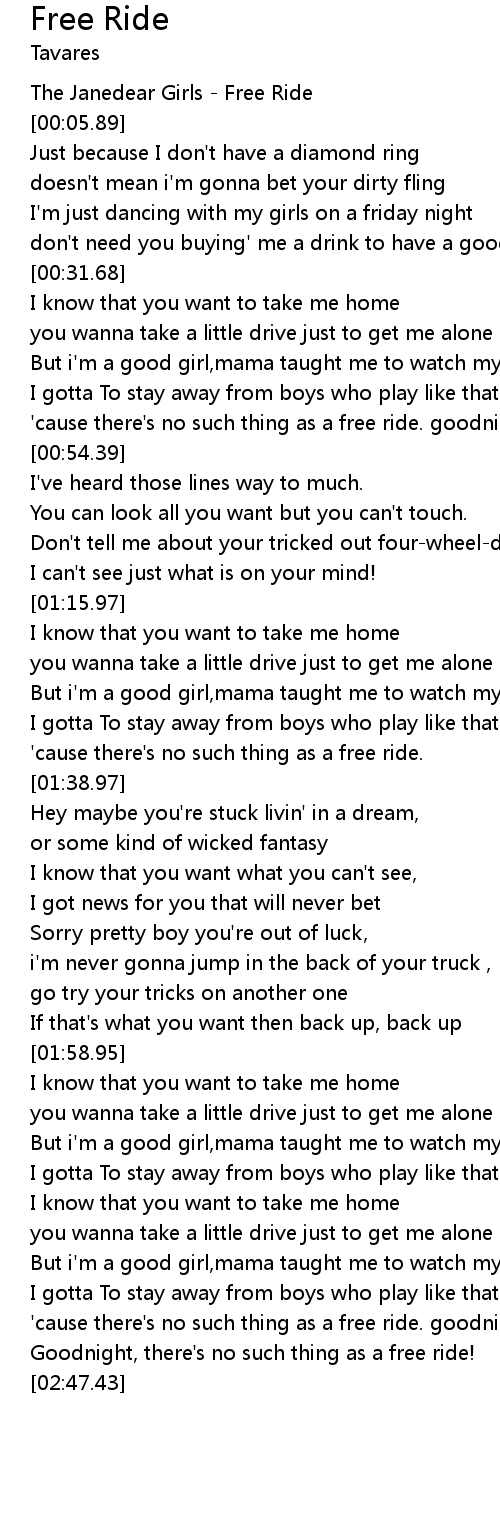 | [00:01.12] | The Janedear Girls - Free Ride |