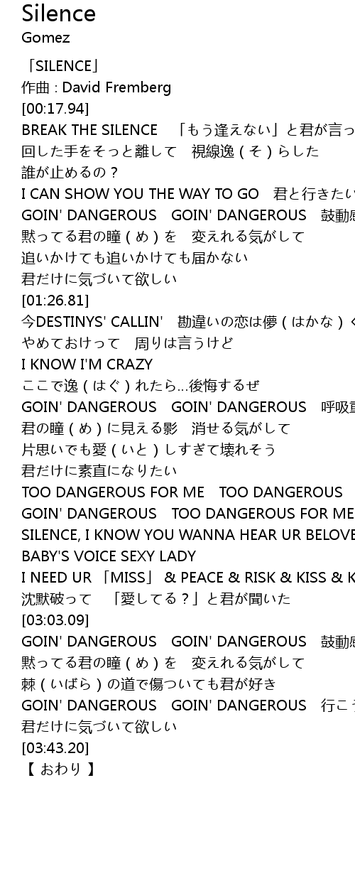 | [00:01.94] | 「SILENCE」 |