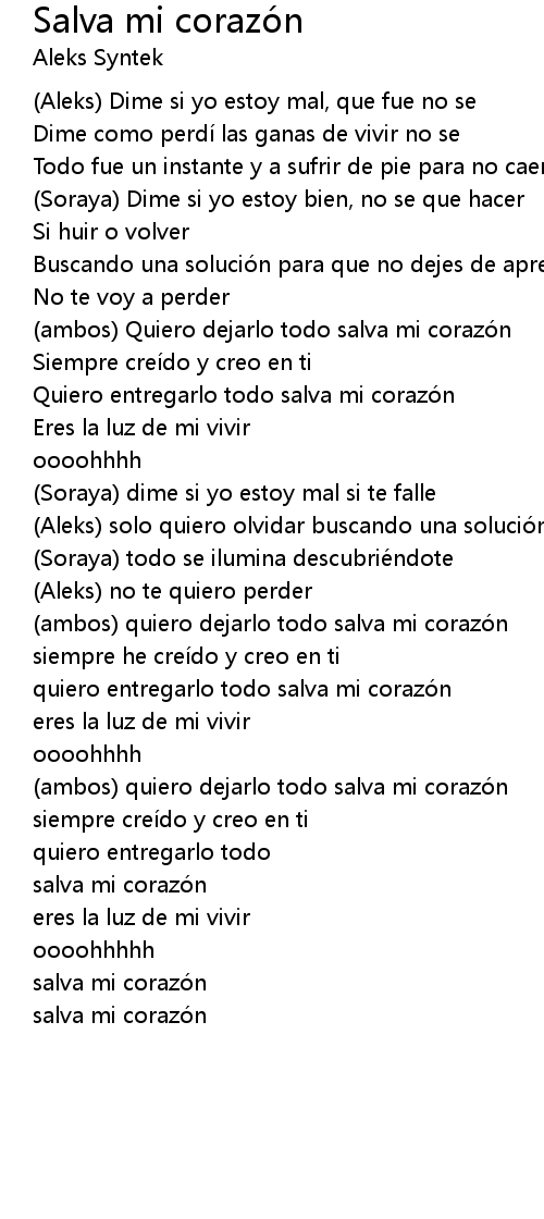 | (ambos) Quiero dejarlo todo salva mi corazón | |