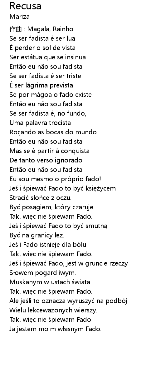 | Jeśli śpiewać Fado, jest w gruncie rzeczy | |