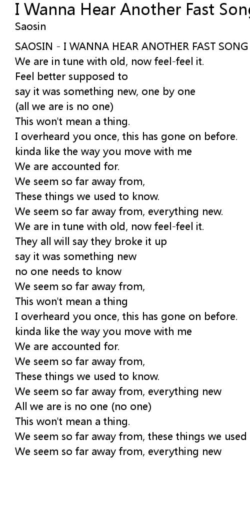 | SAOSIN - I WANNA HEAR ANOTHER FAST SONG | |