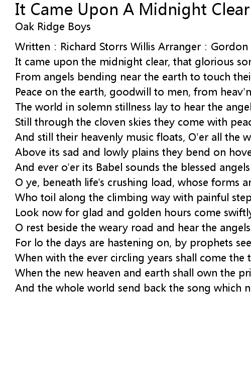 | Peace on the earth, goodwill to men, from heav'n's all gracious king | |