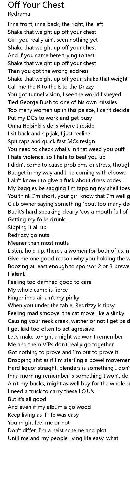 Shake that weight up off your, shake that weight up off your chest |