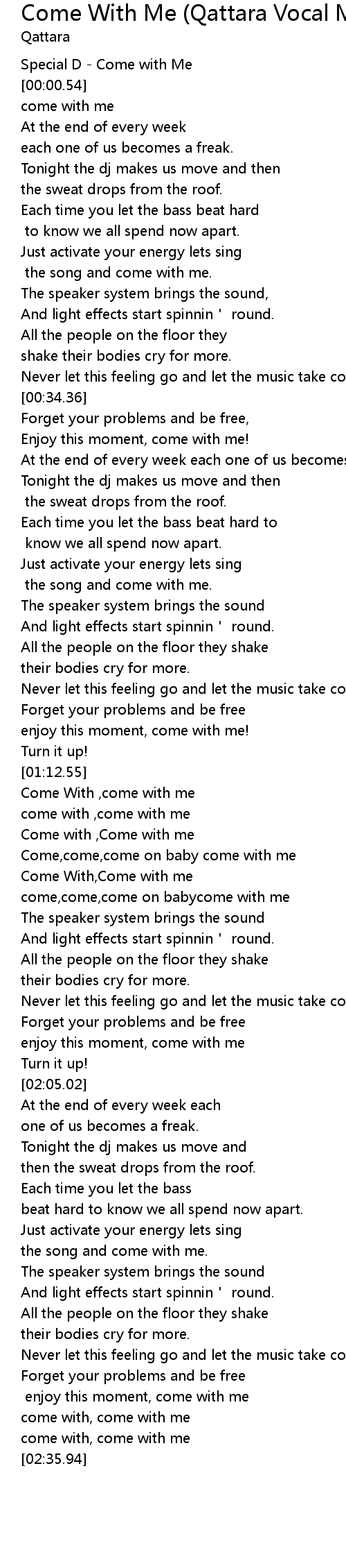 | [00:31.31] | Never let this feeling go and let the music take control. |