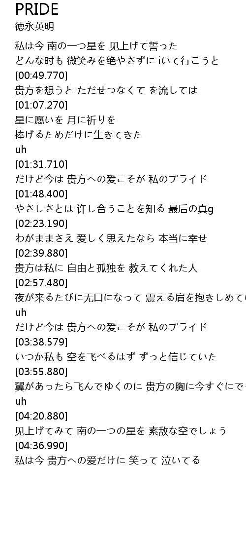 | [03:23.100] | だけど今は 贵方への爱こそが 私のプライド |