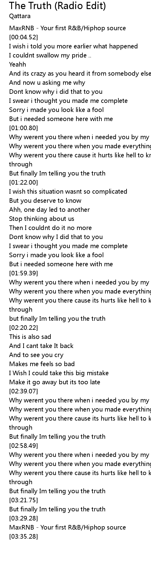 | [02:39.57] | Why werent you there when i needed you by my side |