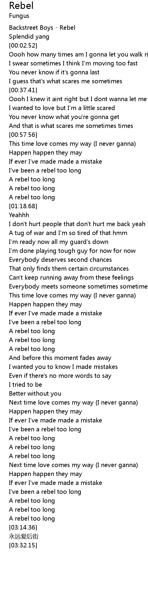 | [03:11.05] | A rebel too long |