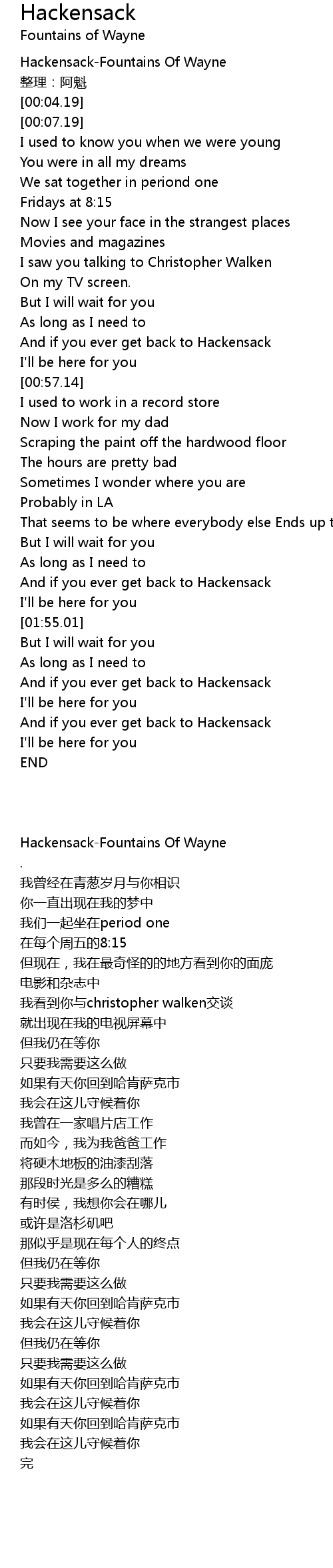 | [00:01.00] | Hackensack-Fountains Of Wayne |