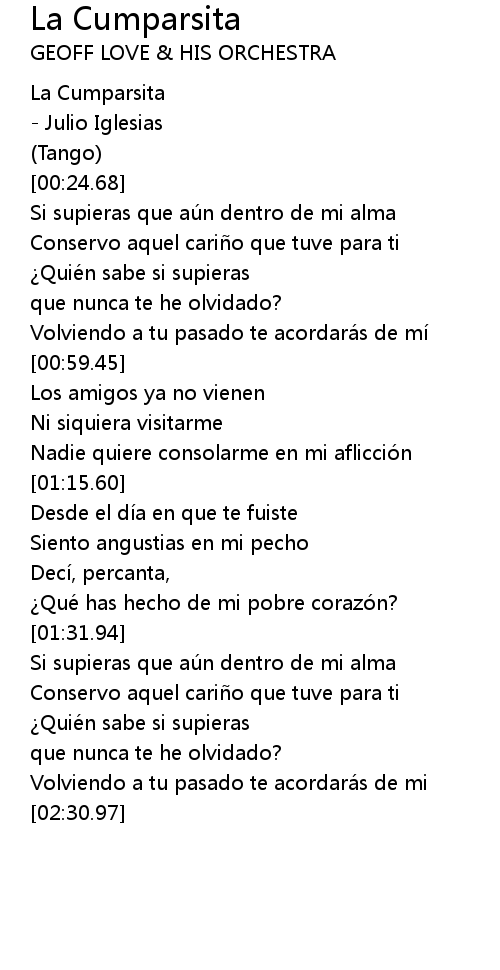 | [02:02.23] | Si supieras que aú n dentro de mi alma |