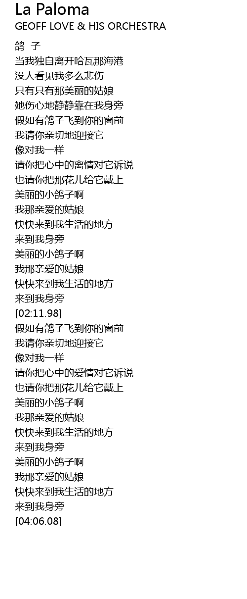 | [02:53.84] | 假如有鸽子飞到你的窗前 |
