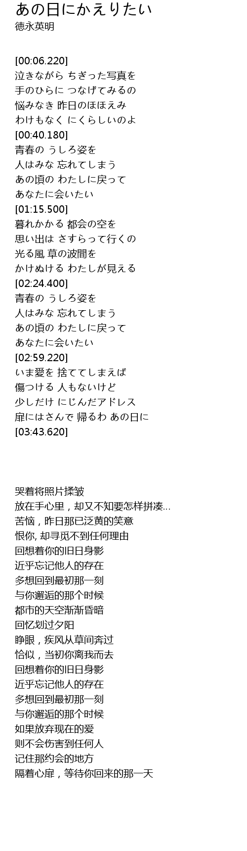 あの頃の わたしに戻って |