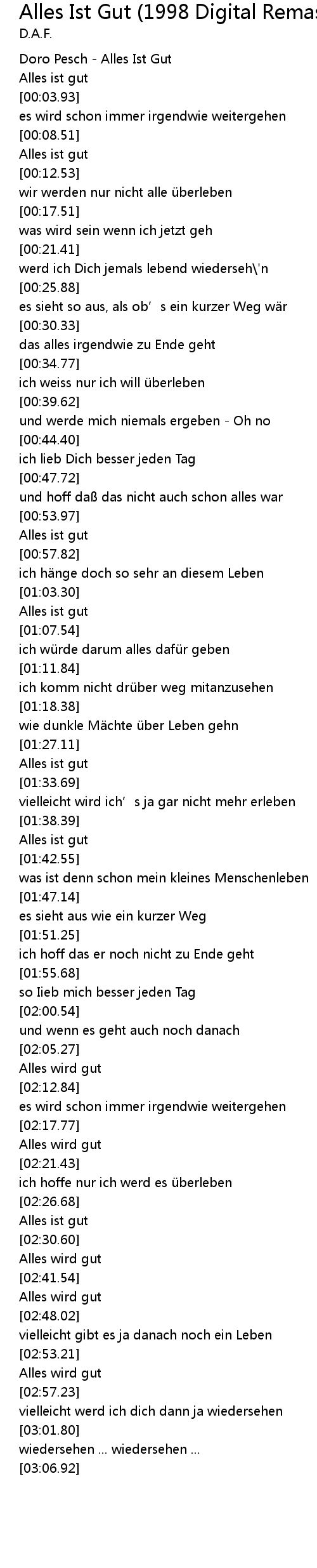 | [00:00.00] | Doro Pesch - Alles Ist Gut |