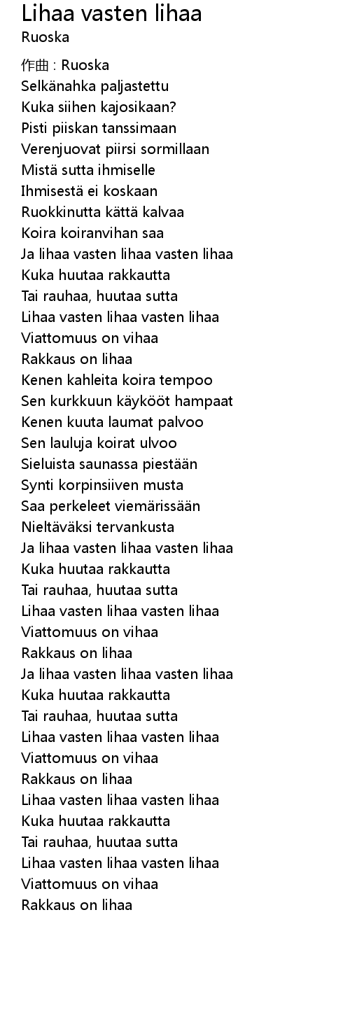 | Ja lihaa vasten lihaa vasten lihaa | |