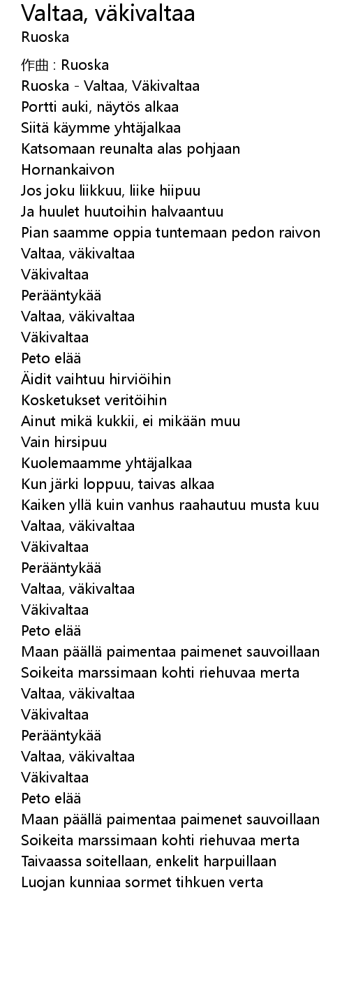 | Kaiken yll kuin vanhus raahautuu musta kuu | |