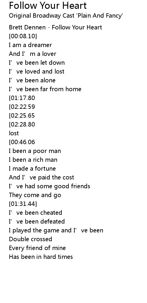 | [00:01.12] | Brett Dennen Follow Your Heart |