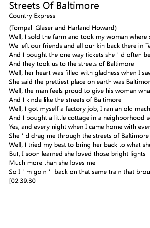 | [01:04.40] | And I kinda like the streets of Baltimore |
