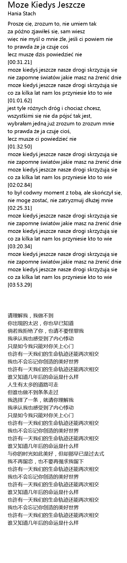 | [03:20.71] | moze kiedy jeszcze nasze drogi skrzyzuj si |