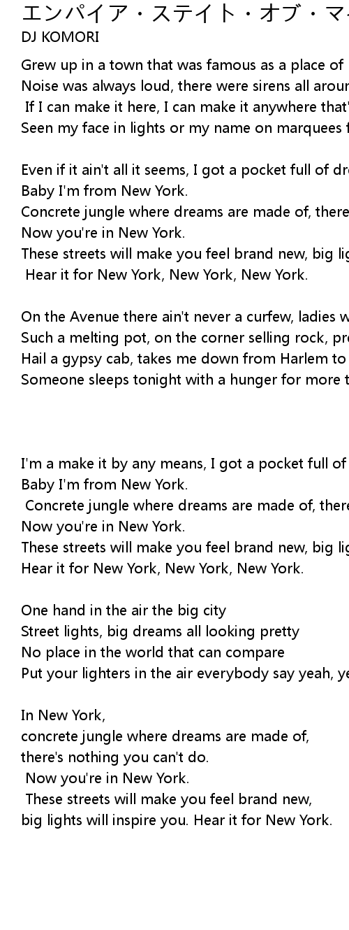 Concrete jungle where dreams are made of, there's nothing you can't do. |