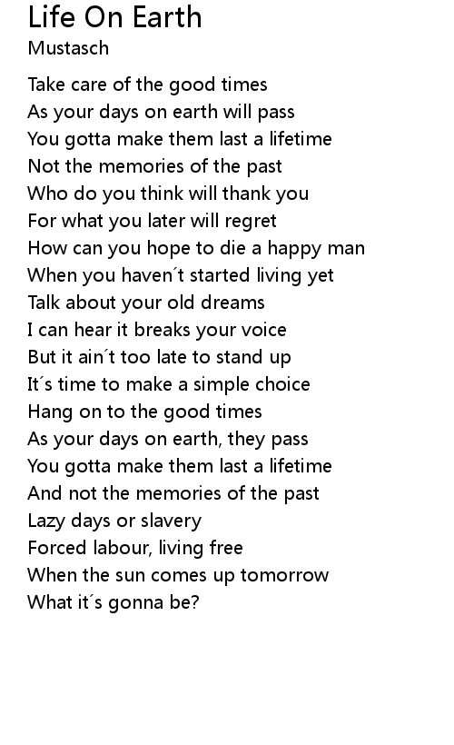 | As your days on earth, they pass | |