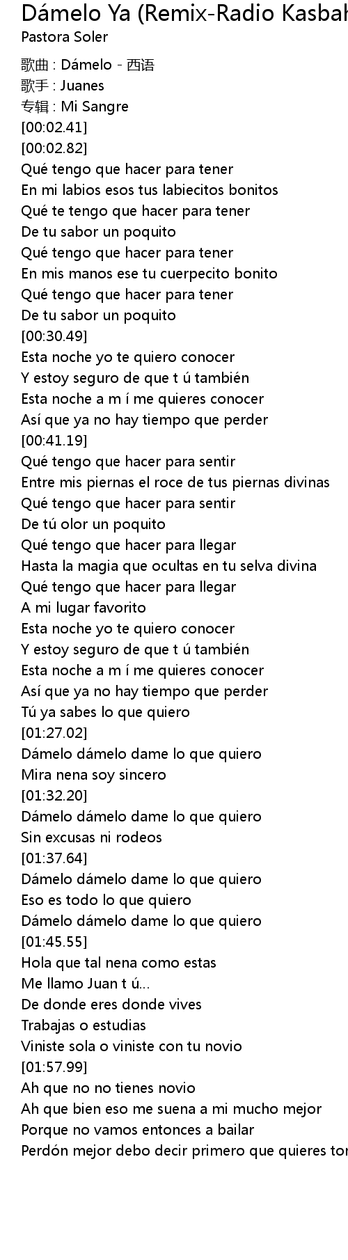 | [01:43.01] | Da melo da melo dame lo que quiero |