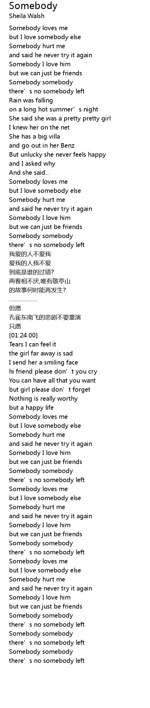 | [01:00.56] | Somebody somebody |