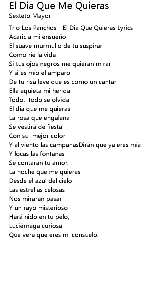 | [00:09.13] | Trio Los Panchos - El Dia Que Quieras Lyrics |