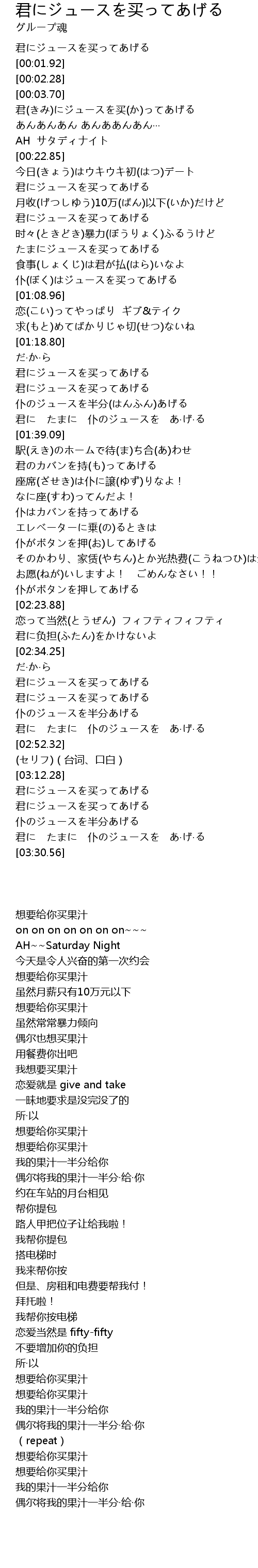 | [03:20.75] | 君に たまに 仆のジュースを あ‧げ‧る |