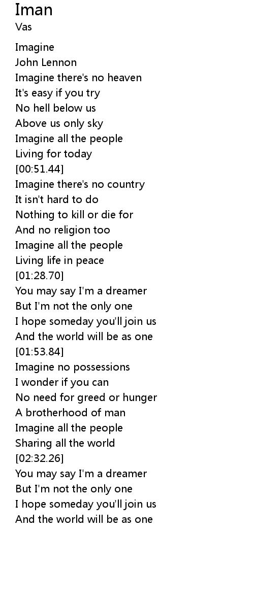 | [00:38.73] | Imagine all the people |