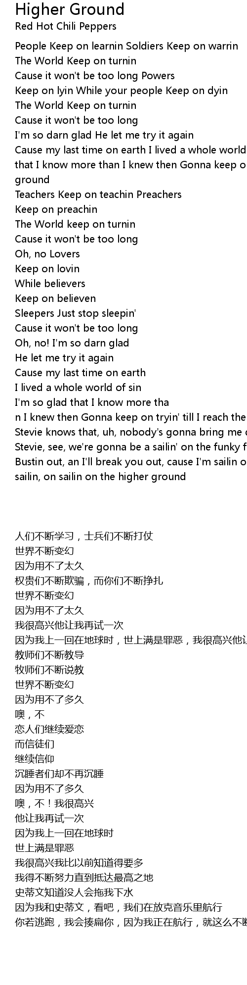 n I knew then Gonna keep on tryin' till I reach the highest ground An |