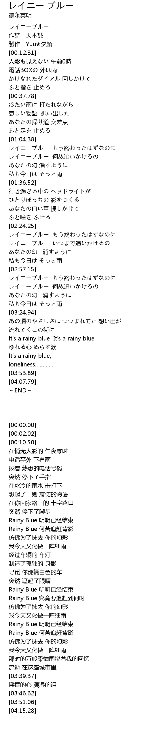 | [02:36.38] | レイニーブルー いつまで追いかけるの |