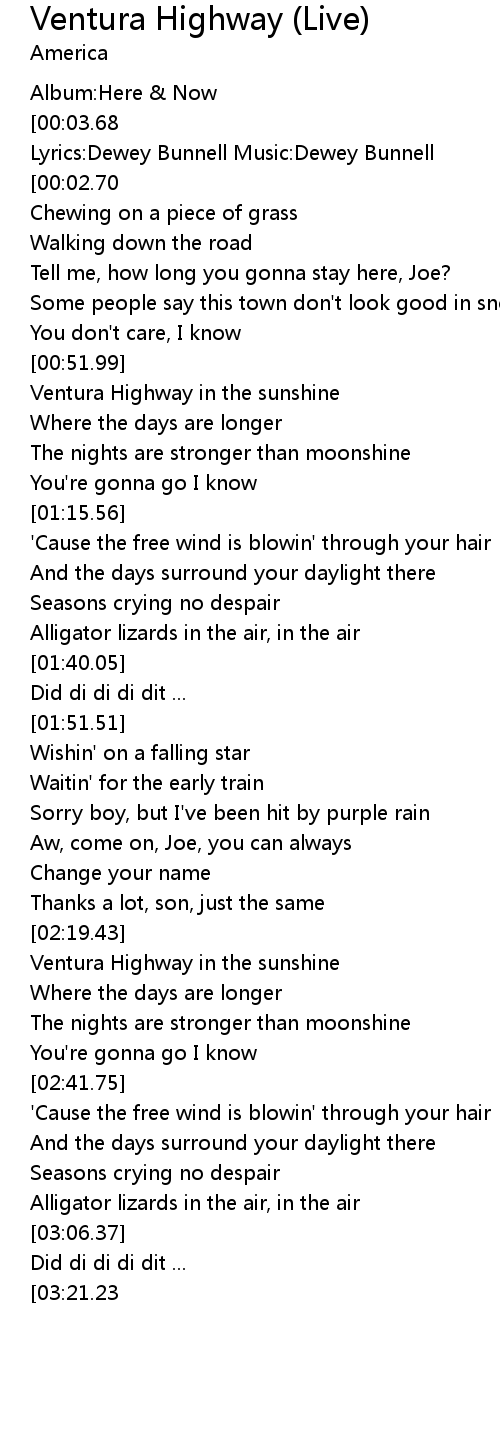 | [00:55.15] | Ventura Highway in the sunshine |