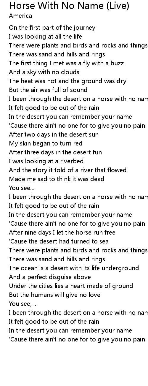 Horse With No Name (Live) Lyrics