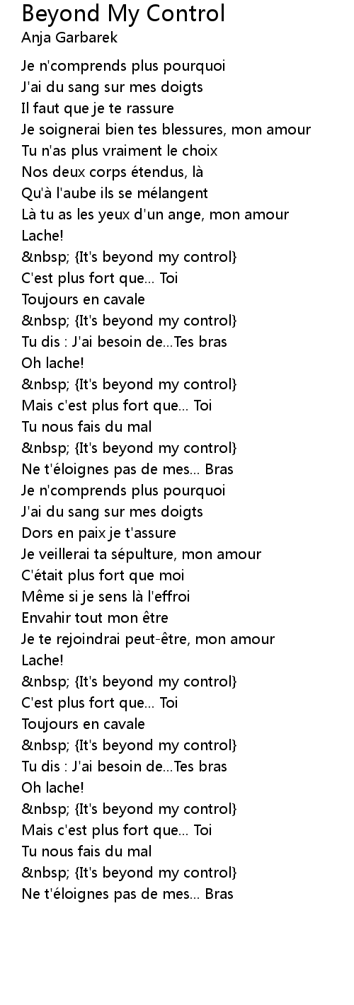| Song | Beyond My Control |
