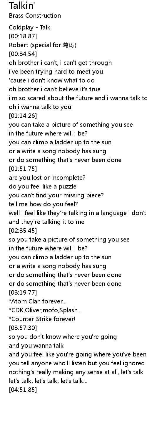 | [04:44.13] | let' s talk, let' s talk, let' s talk... |