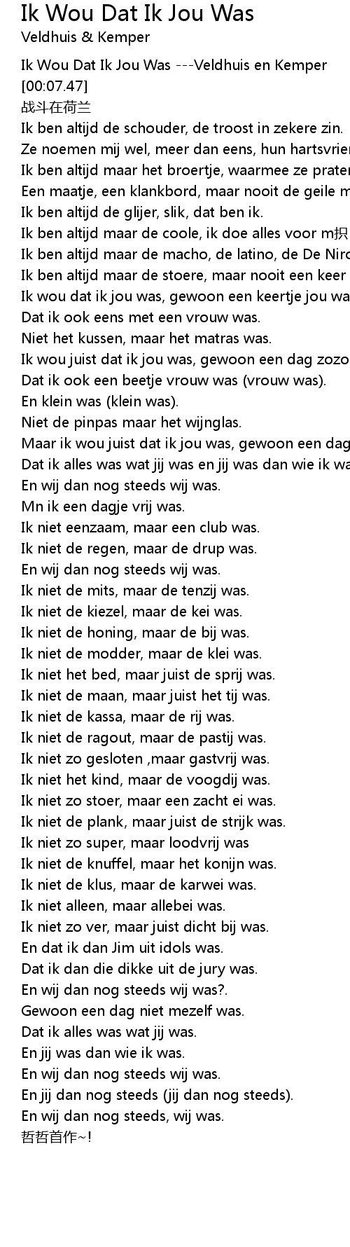 | [00:03.43] | Ik Wou Dat Ik Jou Was Veldhuis en Kemper |