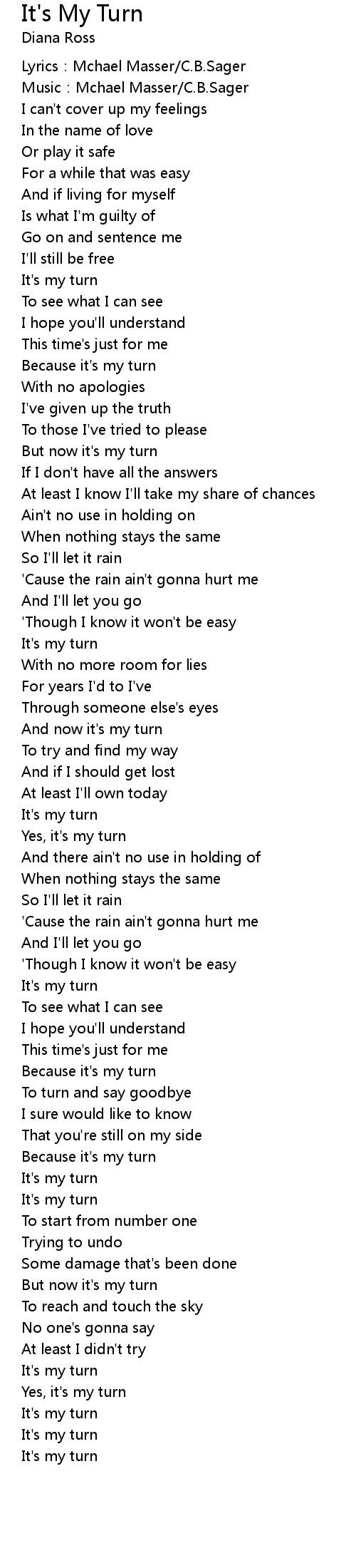 | Song | It's My Turn |