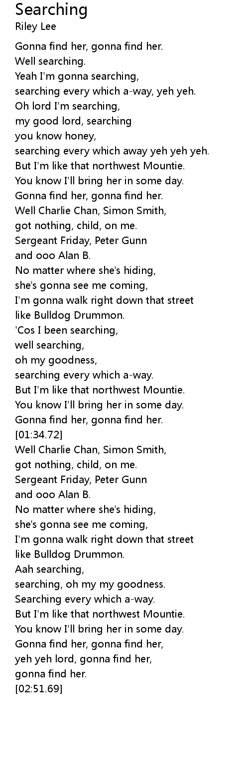 | [02:45.16] | yeh yeh lord, gonna find her, |