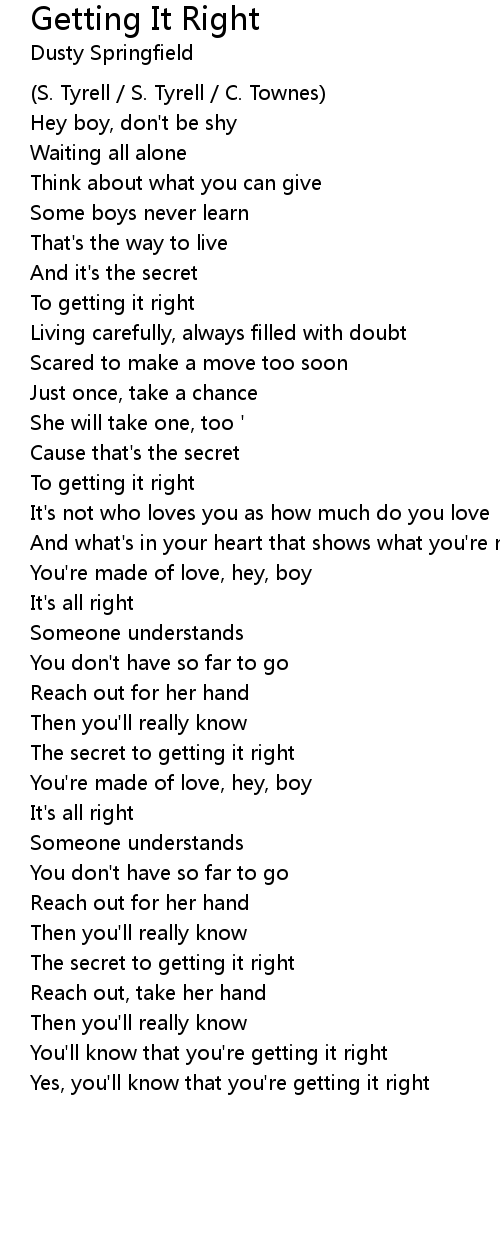 You'll know that you're getting it right |