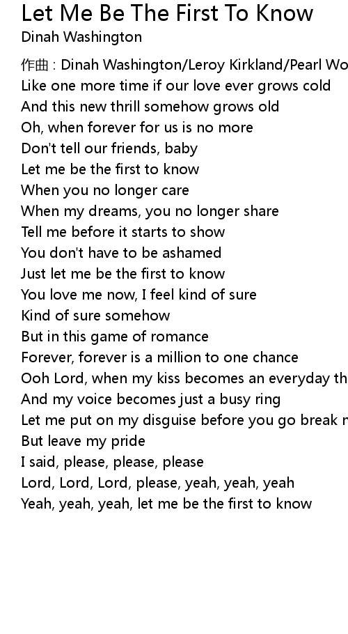 | Song | Let Me Be The First To Know |