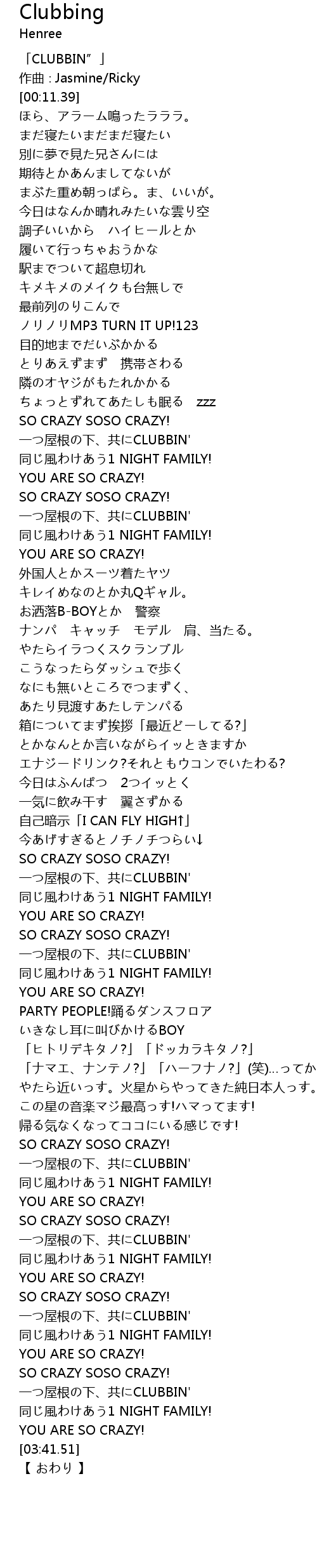 | [03:21.14] | 一つ屋根の下、共にCLUBBIN' |