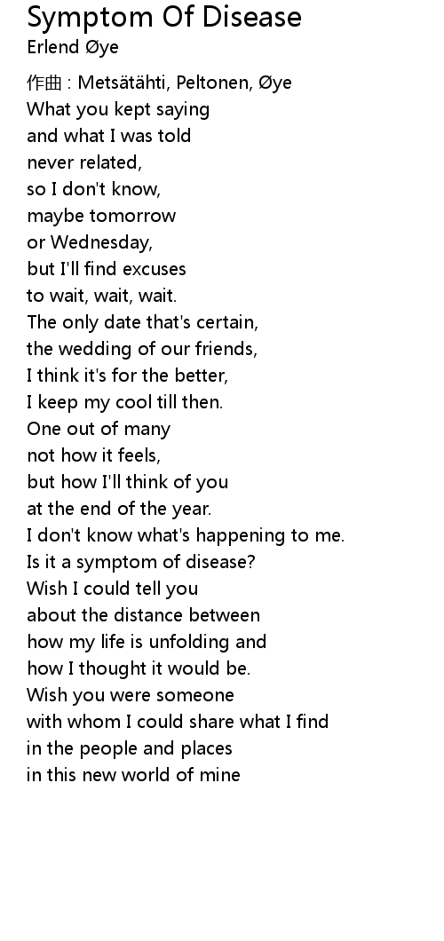 | Song | Symptom Of Disease |