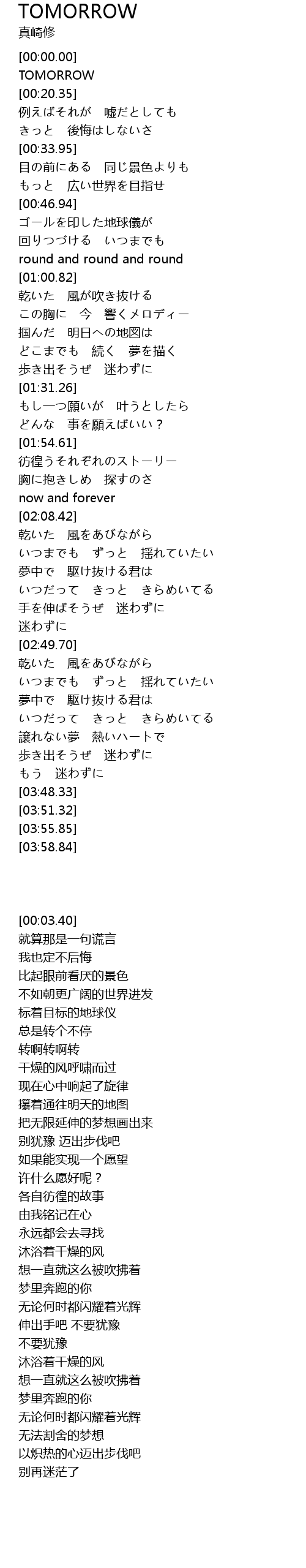 | [00:03.40] | TOMORROW |